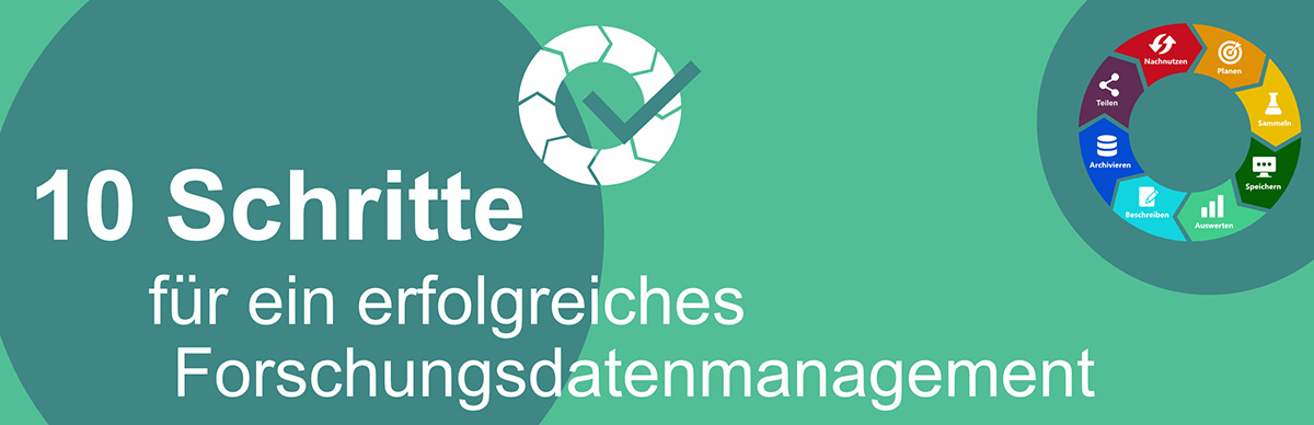 Die Technische Universität Berlin hat ein Dokument mit 10 Schritten zum erfolgreichen Forschungsdatendokument veröffentlicht zu dem auch sechs weitere Checklisten für die Vertiefung von Teilaspekten des FDM gehören. Diese haben wir als Netzwerk nachgenutzt und für den Raum Thüringen angepasst. Im generellen Dokument finden Sie eine Übersicht und im Folgenden die einzelnen Checklisten mit weiteren nützlichen Quellen. Sowohl oben als auch unten sind die Checklisten als PDF hinter den Bildern verlinkt. Sofern die verlinkte Quelle nicht auf Deutsch verfügbar ist, wird die Sprache der Quelle durch den entsprechenden ISO 639-1-Code gekennzeichnet, z.B. (en) für Englisch. Wir empfehlen Ihnen ebenfalls, einen Blick in das Survival Kit - Erste Schritte im Forschungsdatenmanagement von FDM-ndsHAW zu werfen.