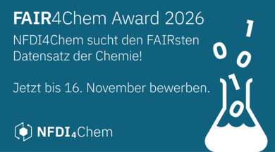 Mit dem FAIR4Chem Award werden Forschende aus der Chemie ausgezeichnet, die ihre Forschungsdaten veröffentlichen und damit einen wichtigen Beitrag zu offener und transparenter Wissenschaft leisten. Prämiert werden veröffentlichte Chemiedatensätze, die die FAIR-Prinzipien – auffindbar, zugänglich, interoperabel und wiederverwendbar – in besonderem Maße erfüllen und so die Nachnutzung wissenschaftlicher Erkenntnisse ermöglichen.