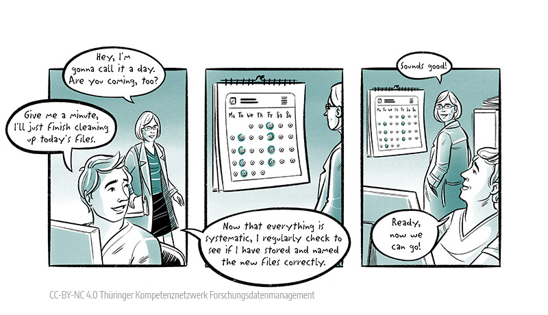 To ensure that the daily polishing of one's working environment fully fulfills its purpose, it is helpful to document the deviations of the actual from the target state concisely. If, for example, certain errors occur more frequently in folder naming and assignment, or if structures become too large and thus unclear, then you should consider adjusting the structure or changing your working environment to make it easier to adhere to the structure.