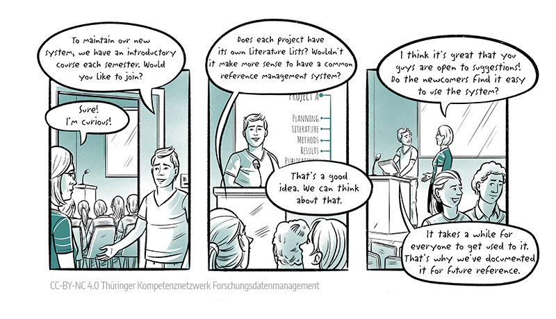 SOPs should be stored centrally and easily available to all team members. If SOPs are newly introduced, all employees should be trained. Readme files, as an alternative to a detailed SOP, can also briefly summarize the new procedure. They should preferably be stored as text files in the appropriate folders. They are also useful for documenting your own work standards.
