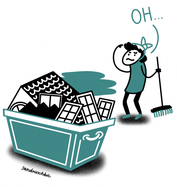 Sie räumte nicht nur den Keller auf, sondern riss das ganze Haus ab.